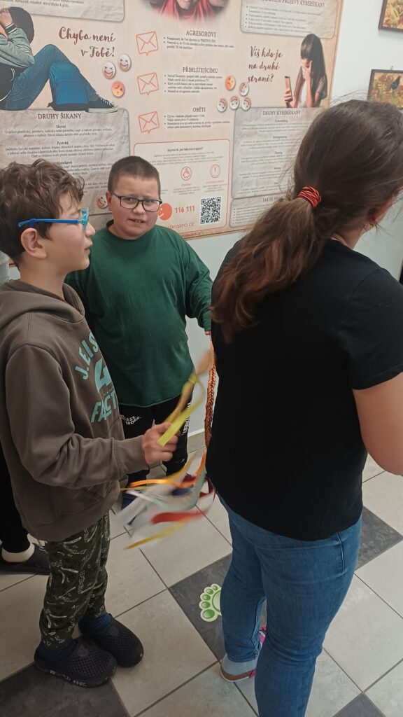 Před Velikonocemi jsme ve škole zažili spoustu zajímavých zážitků, při kterých jsme se nejen bavili, ale také jsme získali spoustu nových informací. Nejprve jsme se vydali do místní knihovny, kde pro nás měli připravené poutavé povídání o velikonočních tradicích 🐣🐰. Děti si navíc vyrobily vlastní velikonoční ozdobu, kterou si odnesly domů jako památku. Poté jsme navštívili hvězdárnu na Vsetíně, kde jsme se dozvěděli nové informace o planetách, hvězdách i vesmíru 🌍🪐. A protože k Velikonocům patří i tradice pomlázky, nechyběla ani trocha té klasické velikonoční atmosféry. Kluci si připravili pomlázky a symbolicky „vymrskali“ holky, aby byly zdravé a veselé po celý rok. Celé to probíhalo v přátelské atmosféře a všichni jsme si to moc užili 🤗.