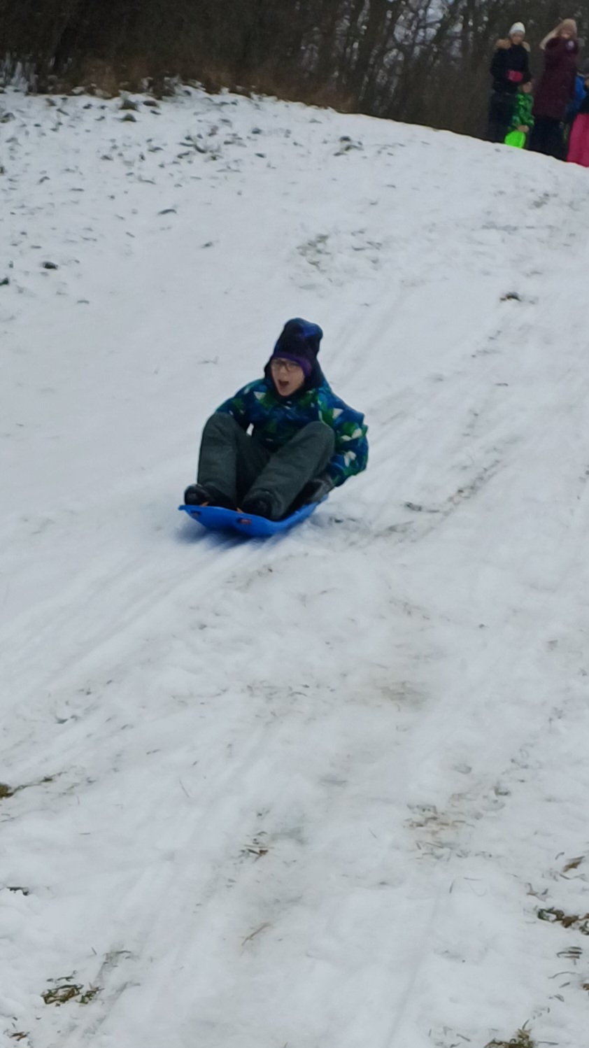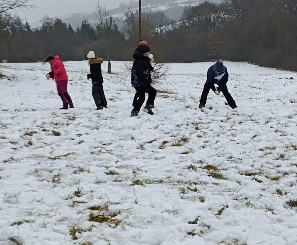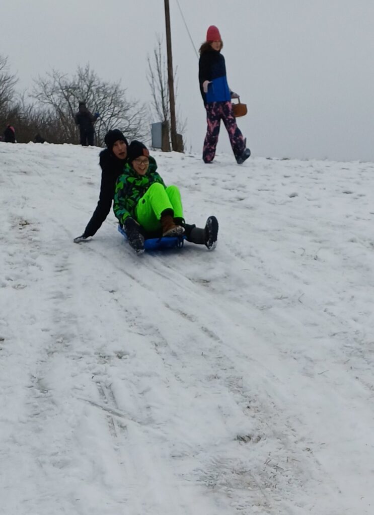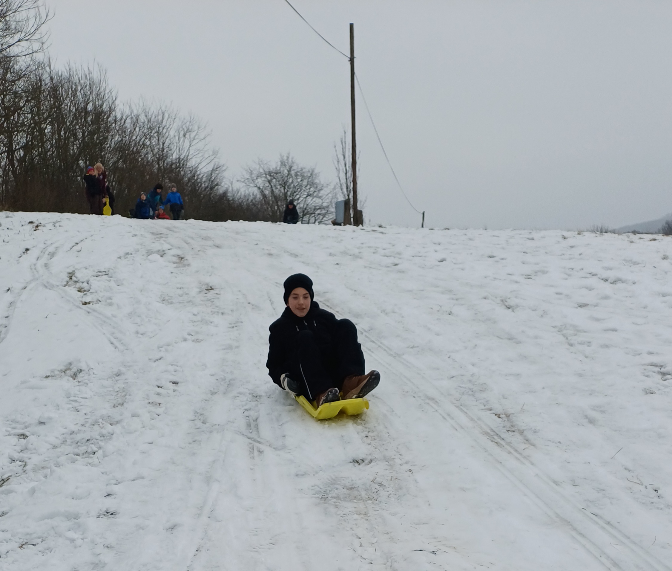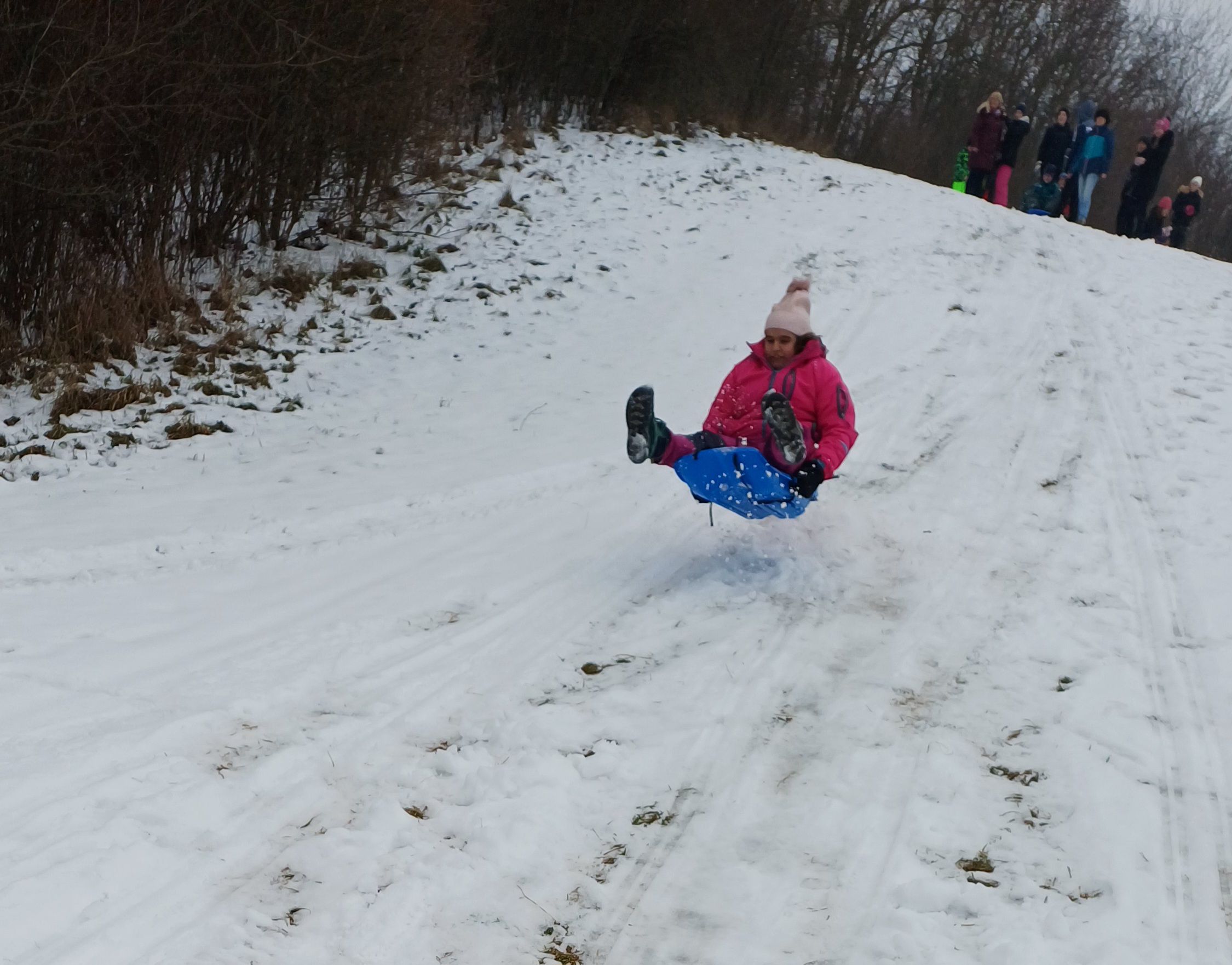 Dnešní dopoledne se neslo ve znamení zimních radovánek. Oblékli jsme teplé oblečení, čepice a rukavice a vyrazili jsme bobovat. Smích a jásot se ozýval ze všech stran. Někteří si užívali rychlé jízdy a jiní se snažili udělat co nejdelší stopu ve sněhu. Po bobování se spontánně rozjela koulovačka. Nešlo ani tak o bitvu, jako spíš o veselou hru plnou běhání, schovávání a překvapivých tref. Venku jsme strávili krásný čas plný pohybu, radosti a společných zážitků. Do školy jsme se vraceli sice s prokřehlými prsty, ale širokými úsměvy ❄️☃️.